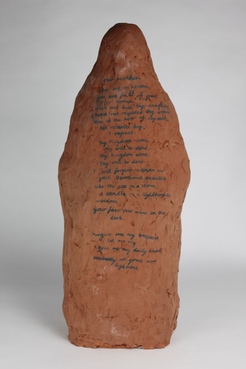A terracotta Madonna, poem tattooed in cobalt on her back